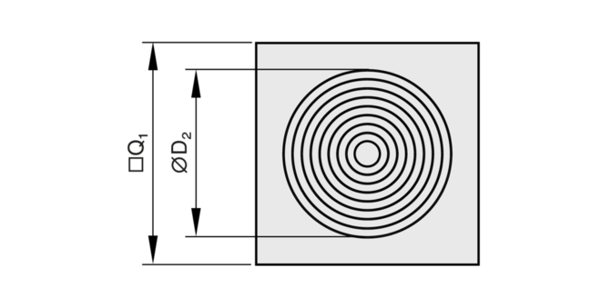 Ceiling diffusers with universal plenum box, damper blade and pressure tap (variant -MN) allow for volume flow rate balancing even with the diffuser face in place.