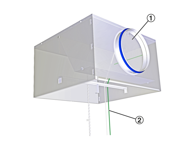 • Ceiling diffusers with universal plenum box, damper blade and pressure tap (variant -MN): The diffuser face need not be removed since the damper blade can be set with two cords (white and green).