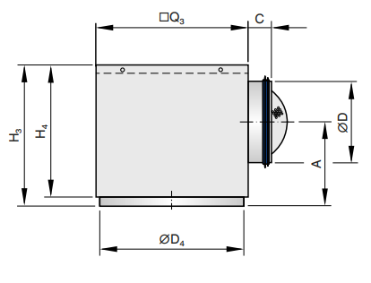 Standard plenum box for supply and extract air for square diffuser faces and for all type TDV, RFD, TID, ADLQ, DLQ, ADLR and DLQL diffusers.