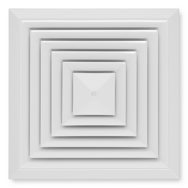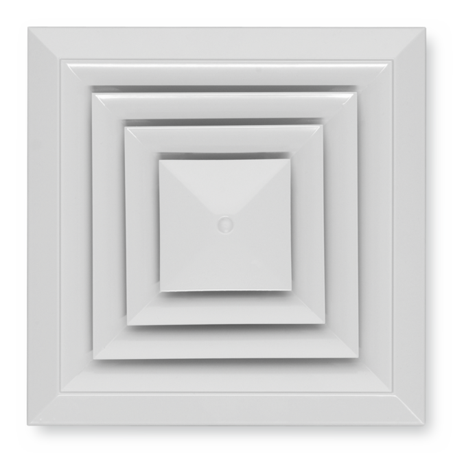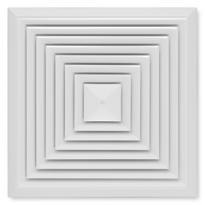 Ceiling diffusers direct the air from air conditioning systems into the room. The resulting airflow induces high levels of room air, thereby rapidly reducing the airflow velocity and the temperature difference between supply air and room air. Ceiling diffusers allow for large volume flow rates. The result is a mixed flow ventilation in comfort zones, with good overall room ventilation, creating only very little turbulence in the occupied zone.