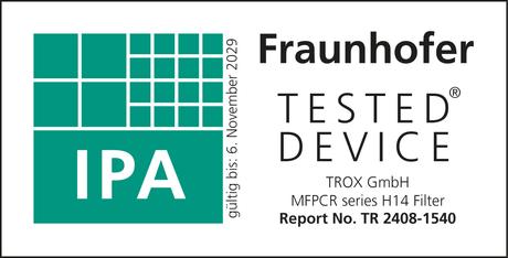 Das Fraunhofer Institut hat das Ausgasgungsverhalten des TROX Filters nach ISO 14644-5 untersucht: TROX kann nun als erstes Unternehmen das entsprechende, unabhängige Zertifikat vorweisen: