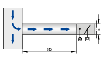 The volume flow rate accuracy ΔV applies to a straight upstream section of the duct. Bends, junctions or a narrowing or widening of the duct cause turbulence that may affect measurement. Duct connections, e.g. branches off the main duct, must comply with EN 1505. Some installation situations require straight duct sections upstream.