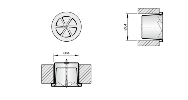 Diffuser face with fixing screws (concealed with decorative caps) or with spring clip fixing.