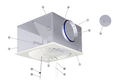Ceiling swirl diffusers with square or circular diffuser face. Supply air and extract air variants for comfort zones. Diffuser face with fixed air control blades for horizontal swirling supply air discharge creating high induction levels. For installation in suspended ceilings of all kinds. Ready-to-install component which consists of the diffuser face and a plenum box, side entry or top entry spigot, and suspension holes or suspension brackets.