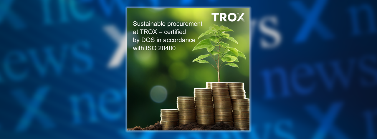 Since March 2024, TROX has been officially certified according to ISO 20400 for sustainable procurement by DQS. This significant certification is the result of over two years of work by our procurement team, who have worked hard to integrate sustainability into every aspect of our procurement processes and increase transparency in the supply chain on issues such as human rights and environmental protection.