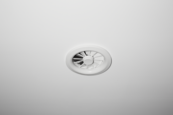 Circular ceiling swirl diffusers, with manual or motorised adjustment of the air pattern to ensure draught-free ventilation of the occupied zone both in heating and cooling modes