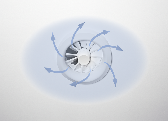 • The efficient swirl creates high induction levels, thereby rapidly reducing the temperature difference and airflow velocity