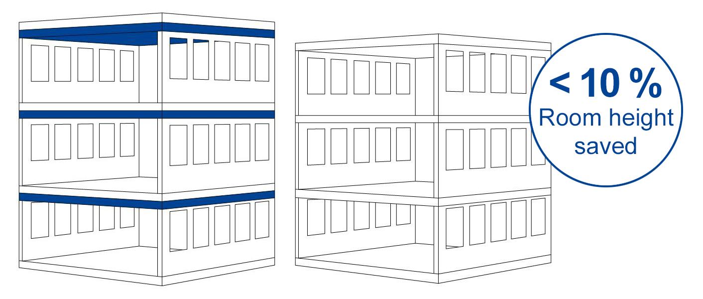 Increasingly, the installation of suspended ceilings is being dispensed with in old and new buildings. The air exchange then often takes place via the corridors through the wall.
