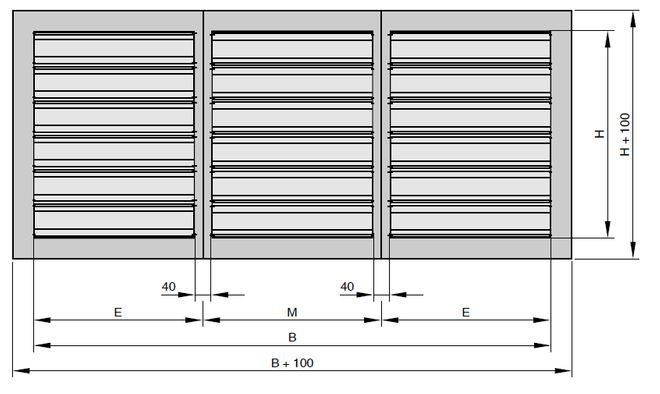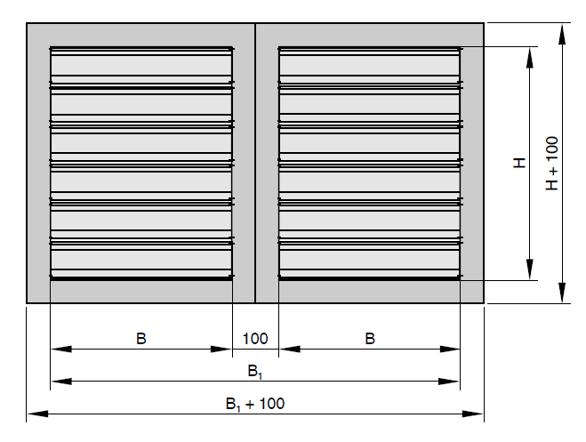 • Großflächige Anordnung von mehreren Einzelgittern in Kombination mit bauseitiger Unterkonstruktion möglich, um sehr große Einbauöffnungen abzudecken
