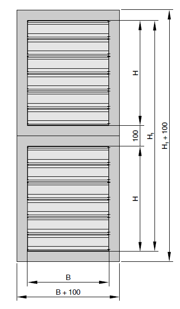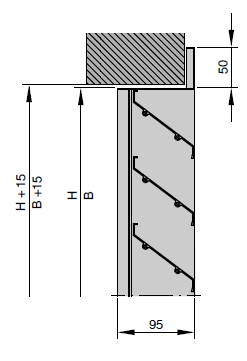 • Höhengeteilt maximal = 4720 mm (Zwischenmaßreihe 2311 –  4719 mm in Schritten von 1 mm)