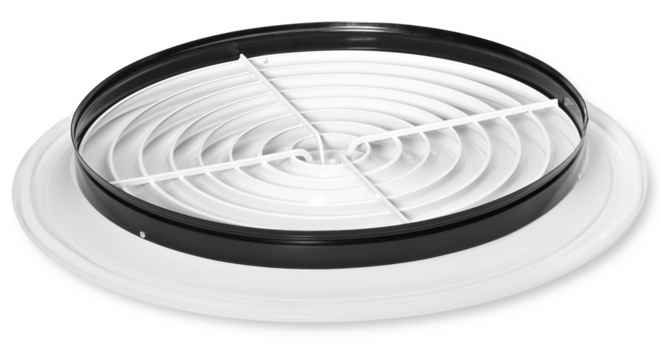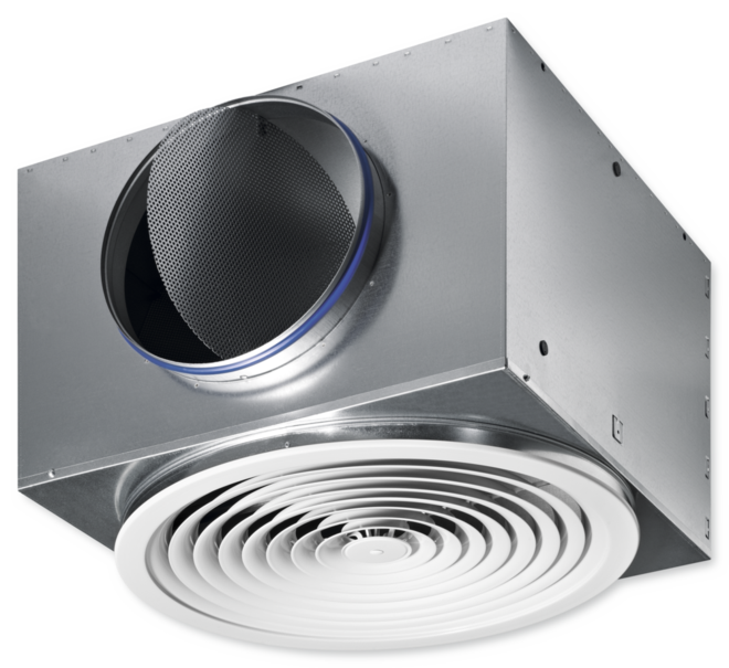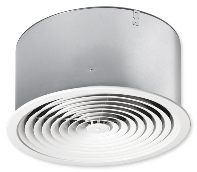 Ceiling diffusers direct the air from air conditioning systems into the room. The resulting airflow induces high levels of room air, thereby rapidly reducing the airflow velocity and the temperature difference between supply air and room air. Ceiling diffusers allow for large volume flow rates. The result is a mixed flow ventilation in comfort zones, with good overall room ventilation, creating only very little turbulence in the occupied zone.