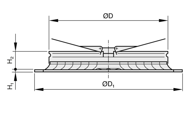 Height of a ceiling diffuser, from the lower edge of the suspended ceiling to the upper edge of the spigot