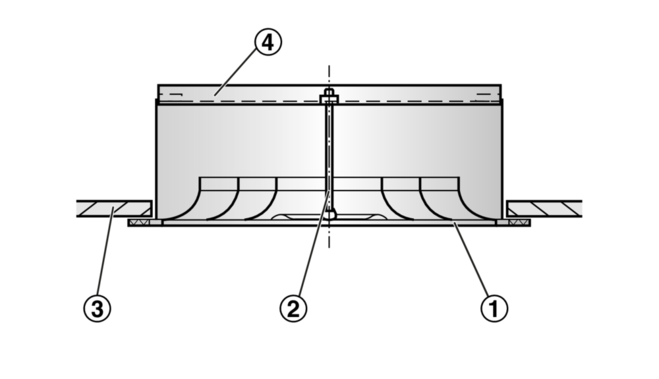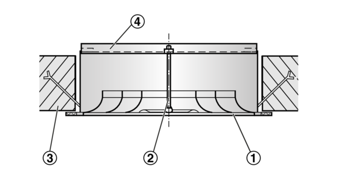 • Ceiling diffusers with universal plenum box and damper blade (variant -M): The diffuser face can be removed to access the damper blade; the damper blade can then be set to any position between 0 and 90°