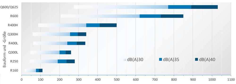 Beispiel: Volumenstrom von 750 m³/h -> Schallleistungspegel eines AIRNAMIC Q / 600: nur 30 dB(A)