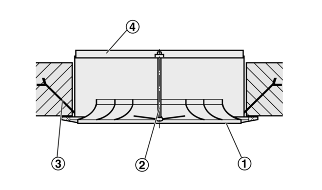 Ceiling diffusers with universal plenum box, damper blade and pressure tap (variant -MN) allow for volume flow rate balancing even with the diffuser face in place.