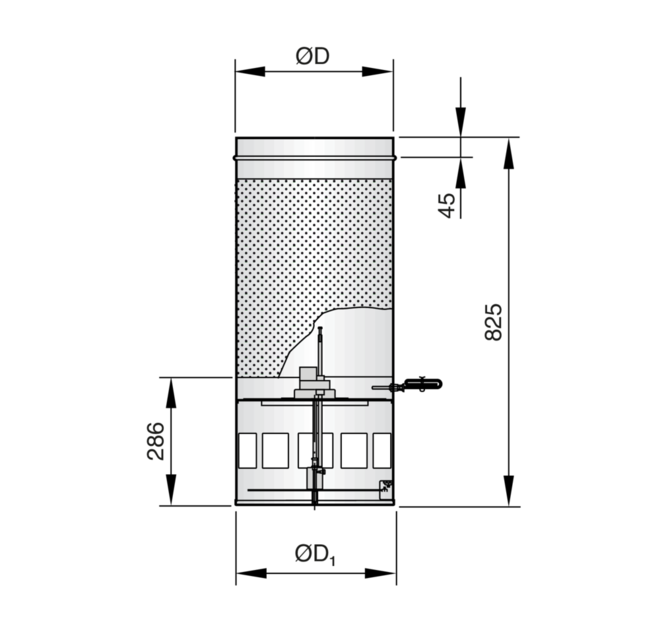 Ready-to-install component which consists of a cylindrical perforated metal casing with air outlets, an air control disc and a top entry spigot.