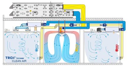 The ventilation requirements in nine out of ten laboratories today are no longer determined only by constantly changing volume flow rates, but also by waste heat, which is predominantly generated by technical devices. These loads must be removed in the most energy-saving way possible, while ensuring a pleasant indoor climate - both for the process and for the people working. This requires large amounts of fresh air in conventional centralized systems. This is a comparatively expensive and only conditionally efficient way of controling the temperature, because with an all-air system, large air volume flows are required for space cooling, which are associated with correspondingly high energy costs for air treatment and distribution.