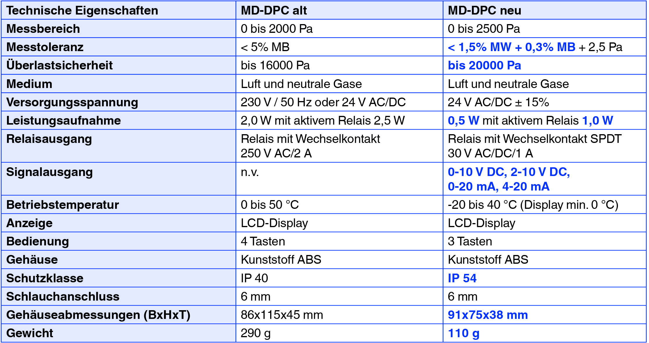 Was daran neu ist? So ziemlich alles: der Messbereich ist größer, die Messtoleranz geringer, die Überlastsicherheit größer, die Leistungsaufnahme geringer und die Schutzklasse höher. Und ganz neu: er verfügt über einen Signalausgang. Zudem ist der neue Druckwächter kompakter und dadurch auch leichter.