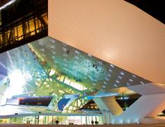 Mit ihrem monolithisch geformten und dennoch fast schwebend erscheinenden Ausstellungsgebäude ist es den Wiener Architekten Delugan & Meissel gelungen, die Dynamik der Marke Porsche in Architektur umzusetzen.