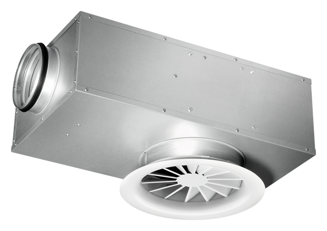 RFD-SIRIUS combines the functions of a volume flow controller, sound attenuator, plenum box and air terminal device in one unit. To determine the current actual volume flow rate, the differential pressure is measured using the integrated measuring tubes and transmitted to the controller. Depending on the desired setpoint value, the volume flow control unit is adjusted with an integrated linear actuator. The construction of the diffuser ensures that sound is effectively absorbed, which results in low sound power levels.