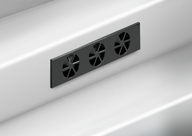 Staircase swirl diffusers with rectangular or circular diffuser face and fixed air control blades for swirling supply air discharge creating high induction levels. For supply air only; for comfort conditioning applications. For installation into the risers of steps.