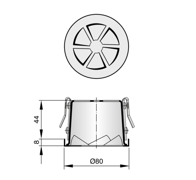 Diffuser face with fixing screws (concealed with decorative caps) or with spring clip fixing.