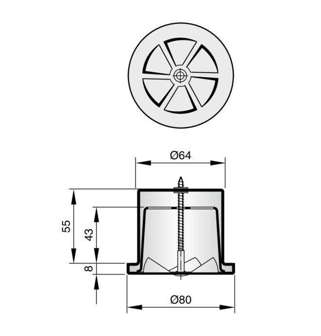Type SDRF staircase swirl diffusers have fixed blades. Air discharge parallel to the installation surface. The supply air to room air temperature difference may range from –6 to +6 K.