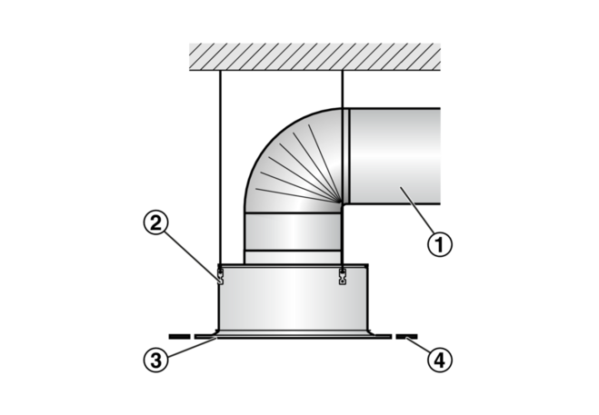 Position of the spigot, defined by the distance of the spigot centre line to the lower edge of the suspended ceiling