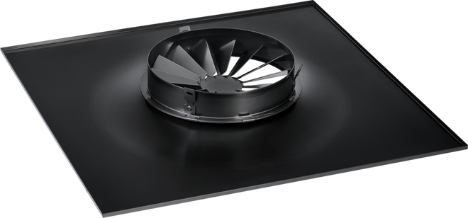 Ceiling swirl diffusers for invisible or inconspicuous installation behind standard metal ceiling tiles or factory-made perforated sheet metal fronts. The ceiling swirl diffuser is suitable for comfort and industrial zones and is installed as a supply or extract air diffuser in the suspended ceiling. The swirling element with fixed air control blades enable a horizontal swirling supply air discharge creating high induction levels so that the airflow velocities and temperature differences are quickly reduced. The special shape of the discharge nozzle allows the swirl diffuser to be used behind standard perforated metal ceiling tiles. To ensure a visually uniform ceiling appearance, the standard metal ceiling tiles must not be thicker than 1.0 mm. Preferred thickness: ≤ 0.7 mm. The ceiling swirl diffuser can be combined with ceilings of all types using a factory-fitted perforated sheet metal front. The ready-to-install functional unit consists of the specially moulded discharge nozzle, the swirl element with fixed air control blades and spigot and is always coated black. The functional unit can be connected directly to the on-site air duct system or combined with a plenum box from the AK-Uni series. In case of a vertical connection, suspension lugs are provided for on-site fixing to the spigot. The plenum box has drilled holes for on-site fixing. All spigots are suitable for ducts according to EN 1506 or EN 13180. The sound power level of the air-regenerated noise is measured according to EN ISO 5135.