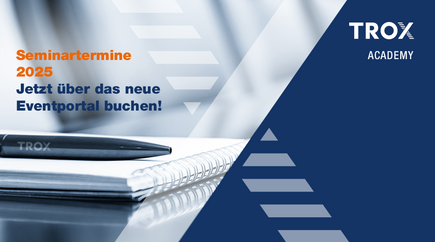 Ab dem 03.02.2025 finden Sie alle Veranstaltungen der TROX ACADEMY auf unserer neuen, modernen Plattform. Hier können Sie bequem alle Events einsehen, verwalten und sich direkt anmelden – übersichtlich und intuitiv.