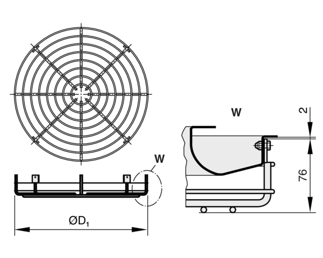 • Blades, casing, extended border, plenum box or spigot and cross bar made of galvanised sheet steel