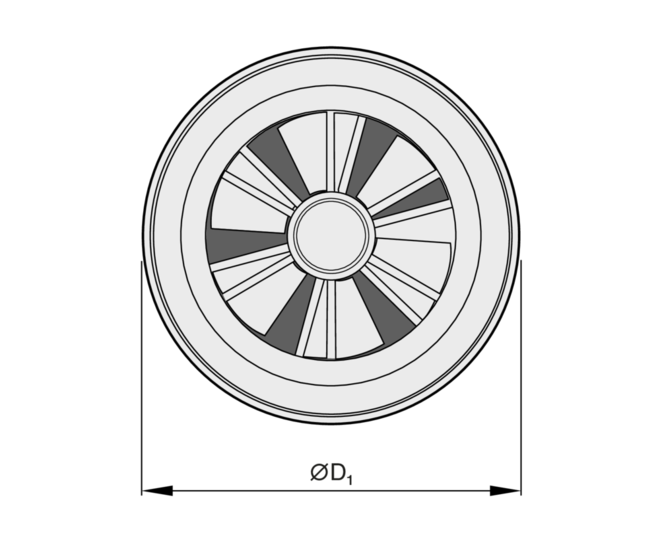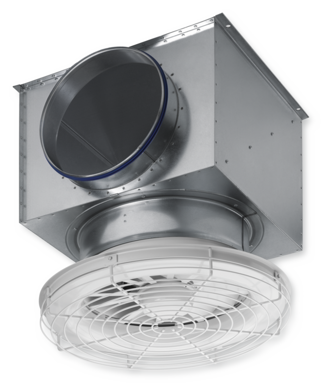 • Radially arranged fixed or adjustable blades for air discharge from horizontal (0°) to vertical (90°)