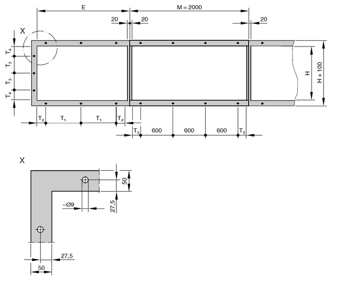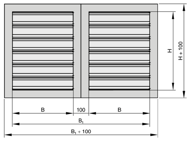 • Großflächige Anordnung von mehreren Einzelgittern in Kombination mit bauseitiger Unterkonstruktion möglich, um sehr große Einbauöffnungen abzudecken